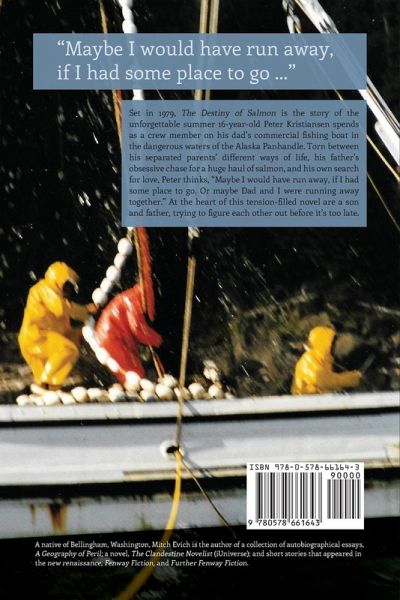 Set in 1979, The Destiny of Salmon is the story of the unforgettable summer 16-year-old Peter Kristiansen spends as a crew member on his dad's commercial fishing boat in the dangerous waters of the Alaska Panhandle. Torn between his separated parents' different ways of life, his father's obsessive chase for a huge haul of salmon, and his own search for love, Peter thinks, "Maybe I would have run away, if I had some place to go. Or maybe Dad and I were running away together." At the heart of this tension-filled novel are a son and father, trying to figure each other out before it's too late.