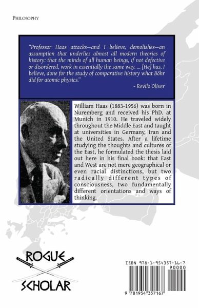 William Haas (1883-1956) was born in Nuremberg and received his PhD. at Munich in 1910. He traveled widely throughout the Middle East and taught at universities in Germany, Iran and the United States. After a lifetime studying the thoughts and cultures of the East, he formulated the thesis laid out here in his final book: that East and West are not mere geographical or even racial distinctions, but two radically different types of consciousness, two fundamentally different orientations and ways of thinking. "Professor Haas attacks-and I believe, demolishes-an assumption that underlies almost all modern theories of history: that the minds of all human beings, if not defective or disordered, work in essentially the same way. ... [He] has, I believe, done for the study of comparative history what Böhr did for atomic physics." - Revilo Oliver