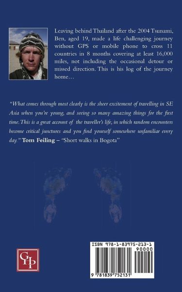 Leaving behind Thailand after the 2004 Tsunami, Ben, aged 19, made a life challenging journey without GPS or mobile phone to cross 11 countries in 8 months covering at least 16,000 miles, not including the occasional detour or missed direction. This is his log of the journey home... "What comes through most clearly is the sheer excitement of travelling in SE Asia when you're young, and seeing so many amazing things for the first time. This is a great account of the traveller's life, in which random encounters become critical junctures and you find yourself somewhere unfamiliar every day." Tom Feiling - "Short walks in Bogota"
