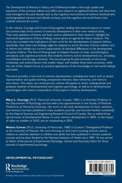The Development of Memory in Infancy and Childhood provides a thorough update and expansion of the previous edition and offers new research on significant themes and ideas that have emerged in the past decade such as the cognitive neuroscience of memory development, autobiographical memory and infantile amnesia, and the cognitive and social factors that underlie memory for events.