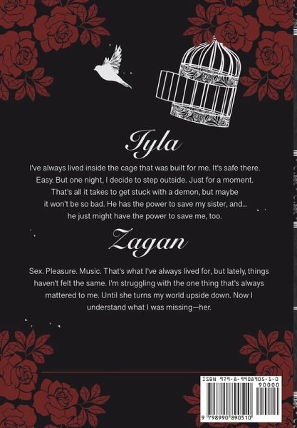 Iyla I've always lived inside the cage that was built for me. It's safe there. Easy. But one night, I decide to step outside. Just for a moment. That's all it takes to get stuck with a demon, but maybe it won't be so bad. He has the power to save my sister, and ... he just might have the power to save me, too. Zagan Sex. Pleasure. Music. That's what I've always lived for, but lately, things haven't felt the same. I'm struggling with the one thing that's always mattered to me. Until she turns my world upside down. Now I understand what I was missing-her.