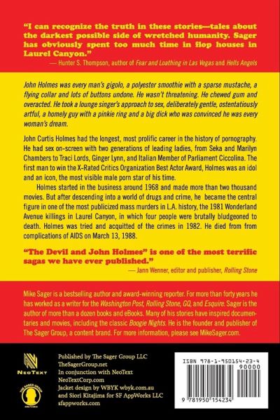 Now with new cover, new interior art, and vintage movie posters added. "John Holmes was every man's gigolo, a polyester smoothie with a sparse mustache, a flying collar, and lots of buttons undone. He wasn't threatening. He chewed gum and overacted. He took a lounge singer's approach to sex, deliberately gentle, ostentatiously artful, a homely guy with a pinkie ring and a big dick who was convinced he was every woman's dream." -from "The Devil and John Holmes." John Curtis Holmes had the longest, most prolific career in the history of pornography. He had sex on-screen with two generations of leading ladies, from Seka and Marilyn Chambers to Traci Lords, Ginger Lynn, and Italian Member of Parliament Cicciolina. The first man to win the X-Rated Critics Organization Best Actor Award, Holmes was an idol and an icon, the most visible male porn star of his time. Holmes started in the business around 1968 and made more than two thousand movies. But after descending into a world of drugs and crime, he became the central figure in one of the most publicized mass murders in L.A. history, the 1981 Wonderland Avenue killings in Laurel Canyon, in which four people were brutally bludgeoned to death. Holmes was tried and acquitted of the crimes in 1982. He died from complications of AIDS on March 13, 1988. Read the story that inspired the movies Boogie Nights, with Mark Walhberg, and Wonderland, with Val Kilmer and Lisa Kudrow. Now with restored edits, updated information, new cover and interior art by Austraila's famous illustration team WBYK, and photos of old Holmes movie posters. The collection includes three bonus stories. "Little Girl Lost," about the life and death of beautiful porn starlet Savannah, among the first of the Vivid Girls; "Deviates in Love" about swingers and amateur porn; and "The Porn Identity," about a divorced man's search for retired porn starlets in an effort to get his mojo back.
