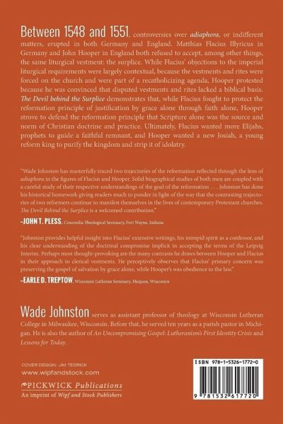 Between 1548 and 1551, controversies over adiaphora, or indifferent matters, erupted in both Germany and England. Matthias Flacius Illyricus in Germany and John Hooper in England both refused to accept, among other things, the same liturgical vestment: the surplice. While Flacius' objections to the imperial liturgical requirements were largely contextual, because the vestments and rites were forced on the church and were part of a recatholicizing agenda, Hooper protested because he was convinced that disputed vestments and rites lacked a biblical basis. The Devil behind the Surplice demonstrates that, while Flacius fought to protect the reformation principle of justification by grace alone through faith alone, Hooper strove to defend the reformation principle that Scripture alone was the source and norm of Christian doctrine and practice. Ultimately, Flacius wanted more Elijahs, prophets to guide a faithful remnant, and Hooper wanted a new Josiah, a young reform king to purify the kingdom and strip it of idolatry.