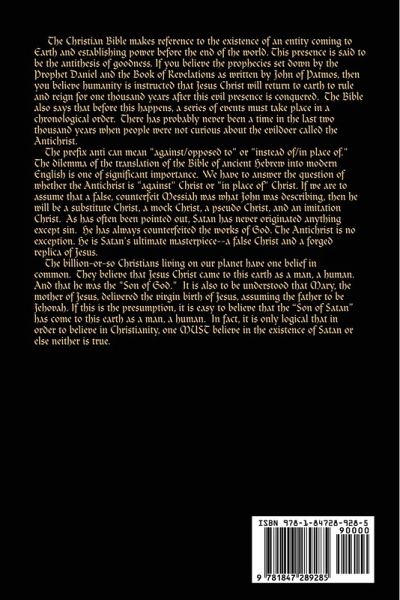 Description: This book informs the world that Satan's Son is alive and currently consuming our planet. It tells how he got here, who prophesied his arrival, and the preparations that were made for this event. It lists the False Prophet, the Familiars, and the Demons who are aiding him in this annihilation, and gives evidence for their existence. It contains new translations from Nostradamus and the Bible, and gives new meaning to well known fictional works such as George Orwell's 1984, Rosemary's Baby, and the Omen. Finally, it gives a way to prove this Revelation, the extent to which he has succeeded so far, and how to exterminate him.