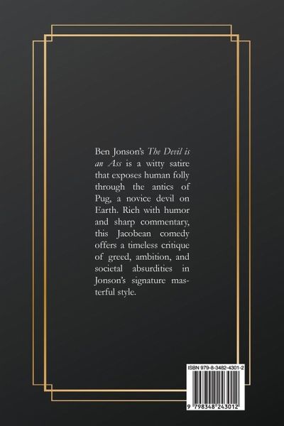 Ben Jonson's The Devil is an Ass is a witty satire that exposes human folly through the antics of Pug, a novice devil on Earth. Rich with humor and sharp commentary, this Jacobean comedy offers a timeless critique of greed, ambition, and societal absurdities in Jonson's signature masterful style.