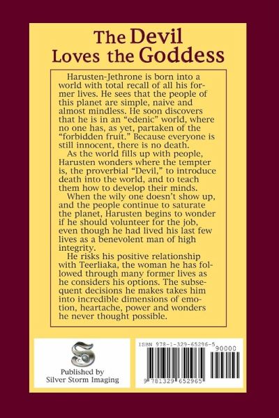 Harusten-Jethrone is born into a world with total recall of all his former lives. He sees that the people of this planet are simple, naive and almost mindless. He soon discovers that he is in an "edenic" world, where no one has, as yet, partaken of the "forbidden fruit." Because everyone is still innocent, there is no death. As the world fills up with people, Harusten wonders where the tempter is, the proverbial "Devil," to introduce death into the world, and to teach them how to develop their mind-power. When the wily one doesn't show up, and the people continue to saturate the planet, Harusten begins to wonder if he should volunteer for the job, even though he had lived his last few lives as a benevolent man of high integrity. He risks his relationship with Teerliaka, a woman he has followed through many of his previous lives, as he considers his options. The subsequent decisions he makes takes him into incredible dimensions of emotion, heartaches, power and wonders he never thought possible.