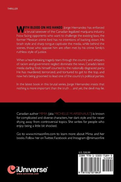 With blood on his hands, Jorge Hernandez has enforced a brutal takeover of the Canadian legalized marijuana industry. Now facing opponents who want to challenge the existing laws, the former Mexican crime lord has no intentions of backing down. His brash style and sharp tongue captivate the media, while behind the scenes, those who oppose him are often met by his crime family's ruthless style of justice. When a heartbreaking tragedy tears through the country and whispers of racism and government neglect dominate the news, Canada's latest media darling finds himself courted by the nationally disgraced party. He has murdered, terrorized, and tortured to get to the top, and now he's being groomed to lead one of the country's political parties. In the latest book in this brutal series, Jorge Hernandez insists that nothing is more important than the truth . . . and yet, the devil may lie.