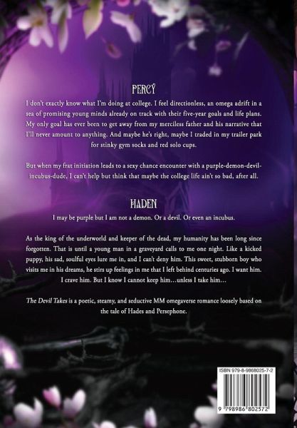 Percy: I don't know what I'm doing at college. I feel directionless, an omega adrift in a sea of promising young minds already on track with their five-year goals and life plans. My only goal has ever been to get away from my merciless father and his narrative that I'll never amount to anything. And maybe he's right, maybe I traded in our trailer park for stinky gym socks and red solo cups. But when my frat initiation leads to a sexy chance encounter with a purple-demon-devil-incubus-dude, I can't help but think that maybe the college life ain't so bad, after all. Haden: I may be purple but I am not a demon. Or a devil. Or even an incubus. As the king of the underworld and keeper of the dead, my humanity has been long since forgotten. That is until a young man in a graveyard calls to me one night. Like a kicked puppy, his sad, soulful eyes lure me in, and I can't deny him. This sweet, docile boy who visits me in his dreams, he stirs up feelings in me that I left behind centuries ago. I want him. I crave him. But I know I cannot keep him...unless I take him... Who needs dating apps when you can stand naked in a graveyard at midnight calling for the Devil to take you away? Follow Haden and Percy on their adventures in both the mortal realm and in the fictional kingdom of Hell. High heat, Omegaverse, with a HEA. The Devil Takes is a poetic, steamy, and seductive MM omegaverse romance loosely based on the tale of Hades and Persephone. It is part one of a duet following Percy, an inexperienced and timid college student, and Haden, the god of the underworld. Book one has a HFN ending and no cliffhanger. For a full list of contents check the author's website or social media at faelovesart.com