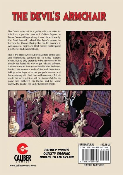 The Pope...The Vatican...and The Devil... The Devil's Armchair is a Gothic tale that takes its title from a peculiar ruin in S. Callisto Square, in Rome. Some old legends say it was placed there by the Devil himself, behind the Pope's palace, to become his throne. During the twelfth century, it was a place of orgies and black masses that inspired prophecies and easy healing. This is the stage where Alberto Militelli, ambiguous and charismatic, conducts his so called esoteric rituals. But he only pretends to be a sorcerer: for he simply has found his way to get rich and affluent. It doesn't…mehr