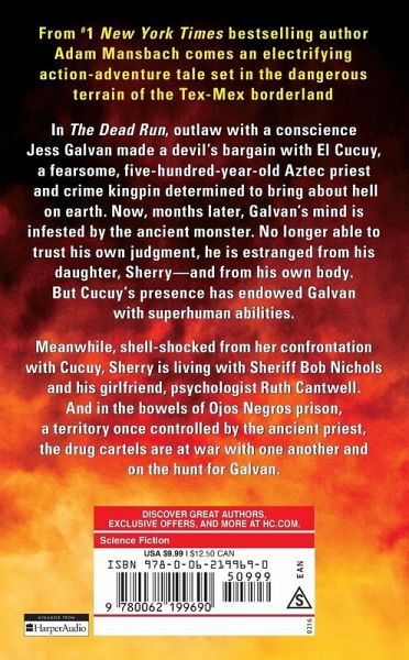 From #1 New York Times bestselling author Adam Mansbach comes an electrifying action-adventure tale set in the dangerous terrain of the Tex-Mex borderland In The Dead Run, outlaw with a conscience Jess Galvan made a devil's bargain with El Cucuy, a fearsome, five-hundred-year-old Aztec priest and crime kingpin determined to bring about hell on earth. Now, months later, Galvan's mind is infested by the ancient monster. No longer able to trust his own judgment, he is estranged from his daughter, Sherry?and from his own body. But Cucuy's presence has endowed Galvan with superhuman abilities. Meanwhile, shell-shocked from her confrontation with Cucuy, Sherry is living with Sheriff Bob Nichols and his girlfriend, psychologist Ruth Cantwell. And in the bowels of Ojos Negros prison, a territory once controlled by the ancient priest, the drug cartels are at war with one another and on the hunt for Galvan.