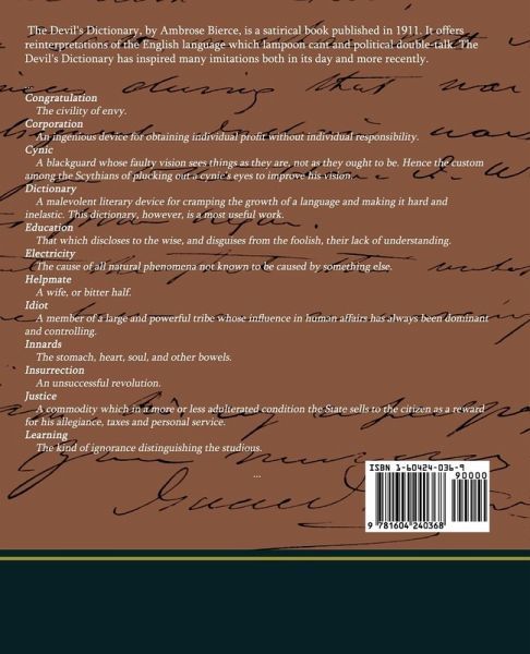 The Devil's Dictionary, by Ambrose Bierce, is a satirical book published in 1911. It offers reinterpretations of the English language which lampoon cant and political double-talk. The Devil's Dictionary has inspired many imitations both in its day and more recently.
