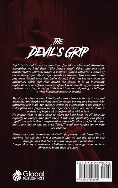 Life's twists and turns can sometimes feel like a whirlwind, disrupting everything we hold dear. "The Devil's Grip" delves into one such transformative journey, where a mother's illness catalyzes a series of events that profoundly disrupt a family's existence. This narrative is not just about the upheaval that ripples through their lives but also about the undaunted spirit that rises amidst the chaos. It is an interesting exploration of how, from moments of darkness, something powerful and resilient can arise, changing trials into triumphs and posing a challenge to what it actually means to endure. My story is about a poor hillbilly who was abused both physically and mentally. And despite working hard to escape poverty and become rich, ultimately lost it all. My message serves as a testament to the power of redemption and forgiveness; my experiences have led me to share a message of hope and transformation with others. No matter what we have done or where we have been, we all have the capacity to change and start anew. Faith and spirituality can play a significant role in that transformation, especially when you feel that you are so lost that no one, not even "God," could ever forgive you or help you change. When you come to understand God's forgiveness and Jesus Christ's sacrifice for our sins, it is a reminder that we are not alone in our struggles and that there is always hope for a fresh start. I hope that my experiences, challenges, and messages can make a difference in the lives of others.