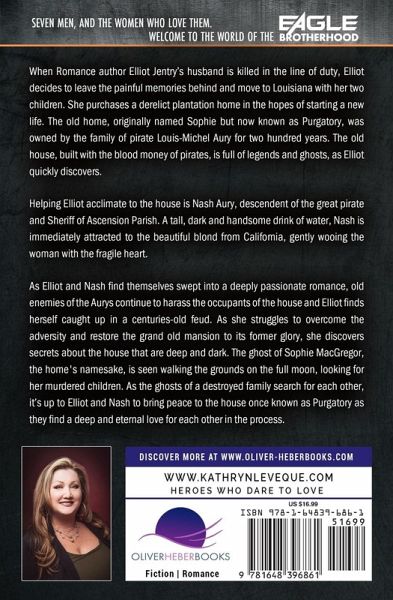 Seven men, and the women who love them. Welcome to the world of the Eagle Brotherhood... When Romance author Elliot Jentry's husband is killed in the line of duty, Elliot decides to leave the painful memories behind and move to Louisiana with her two children. She purchases a derelict plantation home in the hopes of starting a new life. The old home, originally named Sophie but now known as Purgatory, was owned by the family of pirate Louis-Michel Aury for two hundred years. The old house, built with the blood money of pirates, is full of legends and ghosts, as Elliot quickly discovers. Helping Elliot acclimate to the house is Nash Aury, descendent of the great pirate and Sheriff of Ascension Parish. A tall, dark and handsome drink of water, Nash is immediately attracted to the beautiful blond from California, gently wooing the woman with the fragile heart. As Elliot and Nash find themselves swept into a deeply passionate romance, old enemies of the Aurys continue to harass the occupants of the house and Elliot finds herself caught up in a centuries-old feud. As she struggles to overcome the adversity and restore the grand old mansion to its former glory, she discovers secrets about the house that are deep and dark. The ghost of Sophie MacGregor, the home's namesake, is seen walking the grounds on the full moon, looking for her murdered children. As the ghosts of a destroyed family search for each other, it's up to Elliot and Nash to bring peace to the house once known as Purgatory as they find a deep and eternal love for each other in the process. Please note: This book was previously published as Purgatory by Kathryn Le Veque