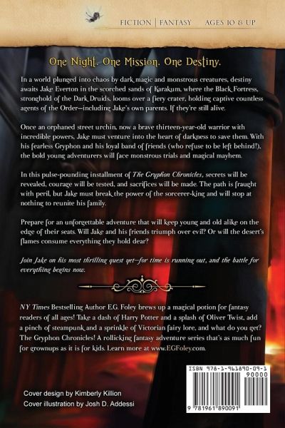 One Night. One Mission. One Destiny... In a world plunged into chaos by dark magic and monstrous creatures, destiny awaits Jake Everton in the scorched sands of Karakum, where the Black Fortress, stronghold of the Dark Druids, looms over a fiery crater, holding captive countless agents of the Order - including Jake's own parents. If they're still alive. Once an orphaned street urchin, now a brave thirteen-year-old warrior with incredible powers, Jake must venture into the heart of darkness to save them. With his fearless Gryphon and his loyal band of friends (who refuse to be left behind!), the bold young adventurers will face monstrous trials and magical mayhem. Join Jake on his most thrilling quest yet - for time is running out, and the battle for everything begins now... (756 pages / 288,225 words)