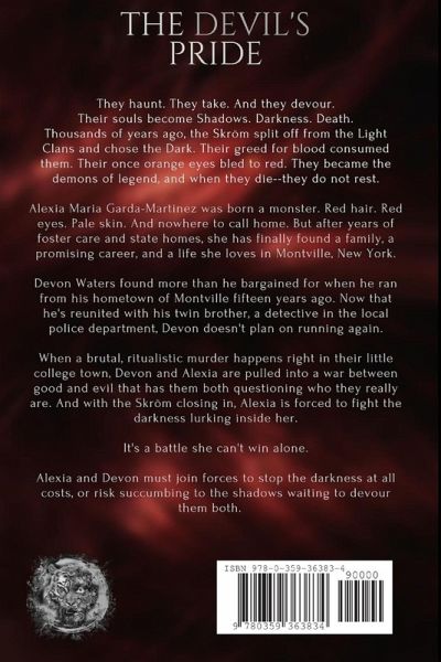 Alexia Maria Garda-Martinez was born a monster. Red hair. Red eyes. Pale skin. And nowhere to call home. But after years of foster care and state homes, she has finally found a family, a promising career, and a life she loves in Montville, New York. Devon Waters found more than he bargained for when he ran from his hometown of Montville fifteen years ago. Now that he's reunited with his twin brother, a detective in the local police department, Devon doesn't plan on running again. When a brutal, ritualistic murder happens right in their little college town, Devon and Alexia are pulled into a war between good and evil that has them both questioning who they really are. And with the Skröm closing in, Alexia is forced to fight the darkness lurking inside her. It's a battle she can't win alone. Alexia and Devon must join forces to stop the darkness at all costs, or risk succumbing to the shadows waiting to devour them both.