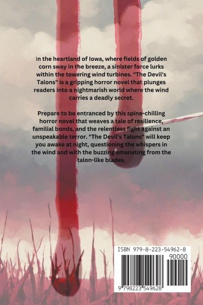 In the heartland of Iowa, where fields of golden corn sway in the breeze, a sinister force lurks within the towering wind turbines. "The Devil's Talons" is a gripping horror novel that plunges readers into a nightmarish world where the wind carries a deadly secret. Meet Miranda, a tenacious widow grappling with the heart-wrenching loss of her husband, who fell victim to a relentless lung cancer. Left alone to care for her 13-year-old daughter, Sarah, Miranda's life is forever changed as the shadows of despair close in around her. Little do they know that their journey has just begun. As ominous winds sweep across the plains, Miranda and Sarah embark on a perilous cross-country odyssey. Along the way, they cross paths with a disparate group of strangers who unveil a horrifying truth: the wind turbines, once a symbol of hope, have become conduits for an ancient and malevolent evil, determined to eradicate humanity through insidious diseases like cancer. In "The Devil's Talons," Miranda and Sarah must summon their inner strength and determination as they confront an age-old malevolence. With the support of their newfound companions, they find themselves thrust into an epic battle of good vs evil. Will they unveil the dark secret in time to save humanity from a chilling fate, or will they fall prey to the malevolent wind's sinister grasp? Prepare to be entranced by this spine-chilling horror novel that weaves a tale of resilience, familial bonds, and the relentless fight against an unspeakable terror. "The Devil's Talons" will keep you awake at night, questioning the whispers in the wind and with the buzzing emanating from the talon-like blades.