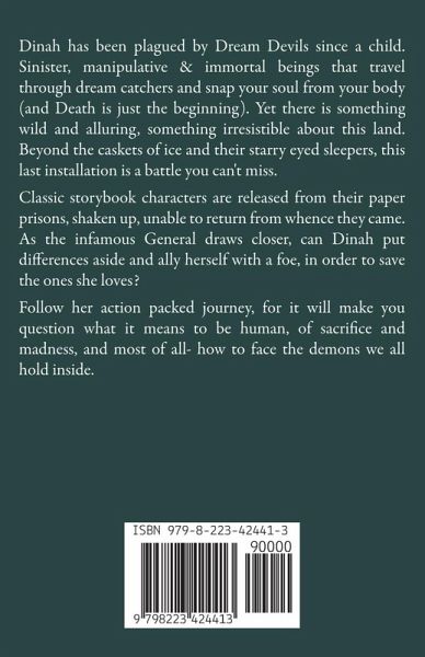 Dinah has been plagued by Dream Devils since a child. Sinister, manipulative & immortal beings that travel through dream catchers and snap your soul from your body (and Death is just the beginning). Yet there is something wild and alluring, something irresistible about this land. Beyond the caskets of ice and their starry eyed sleepers, this last installation is a battle you can't miss. Classic storybook characters are released from their paper prisons, shaken up, unable to return from whence they came. As the infamous General draws closer, can Dinah put differences aside and ally herself with a foe, in order to save the ones she loves? Follow her action packed journey, for it will make you question what it means to be human, of sacrifice and madness, and most of all- how to face the demons we all hold inside.