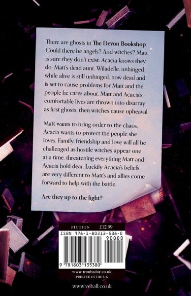 There are ghosts in The Devon Bookshop. Could there be angels? And witches? Matt is sure they don't exist. Acacia knows they do. Matt's dead aunt, Wiladelle, unhinged while alive is still unhinged, now dead and is set to cause problems for Matt and the people he cares about. Matt and Acacia's comfortable lives are thrown into disarray as first ghosts, then witches cause upheaval. Matt wants to bring order to the chaos. Acacia wants to protect the people she loves. Family, friendship and love will all be challenged as hostile witches appear one at a time, threatening everything Matt and Acacia hold dear. Luckily Acacia's beliefs are very different to Matt's and allies come forward to help with the battle. Are they up to the fight?