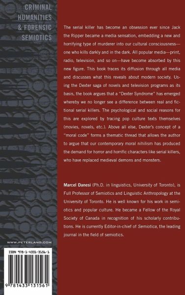 The serial killer has become an obsession ever since Jack the Ripper became a media sensation, embedding a new and horrifying type of murderer into our cultural consciousness - one who kills darkly and in the dark. All popular media - print, radio, television, and so on - have become absorbed by this new figure. This book traces its diffusion through all media and discusses what this reveals about modern society. Using the Dexter saga of novels and television programs as its basis, the book argues that a "Dexter Syndrome" has emerged whereby we no longer see a difference between real and fictional serial killers. The psychological and social reasons for this are explored by tracing pop culture texts themselves (movies, novels, etc.). Above all else, Dexter's concept of a "moral code" forms a thematic thread that allows the author to argue that our contemporary moral nihilism has produced the demand for horror and horrific characters like serial killers, who have replaced medievaldemons and monsters.