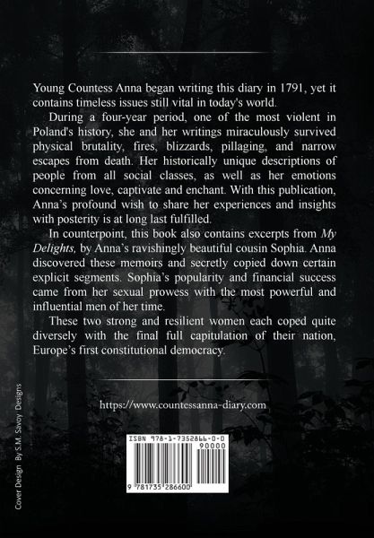 A literary masterpiece that waited over 200 years to be discovered, The Diary of Countess Anna Maria Berezowska, A True Story, is a unique, first-hand account by a young aristocrat unwittingly caught up in the brutal armed invasion of Poland, her beloved homeland, during the Polish-Russian War at the end of the 18th century. It reads like a romantic mystery saga, although it is authentic nonfiction replete with historical and cultural facts. It was translated into English by John A. Stelnicki, Anna's direct descendant, over 60 years ago. Countess Anna and her writings miraculously survived raging fires and blizzards, murderous pillaging and ambush, imprisonment, near starvation, and other narrow escapes from death. Her descriptions of people from all social classes including Polish peasants and servants, are unprecedented. The unaffected way she confides her sincere emotions concerning love captivate and enchant. This intimate narrative cries through to generations beyond, disclosing such vital current issues as rape victimization, unplanned pregnancy, social class injustices, religious differences, constraining traditions, assaults on women, forced confinement, war, betrayal... thus linking that bygone era with life today. Our fascinating heroine also cannot resist peeking into and copying down racy extracts from her lascivious cousin Sophia's diary, My Delights, detailing her wanton sexual adventures. Both Anna and Sophia, as well as the other unforgettable characters, cope quite diversely with the final full capitulation of their nation, Europe's first constitutional democracy.