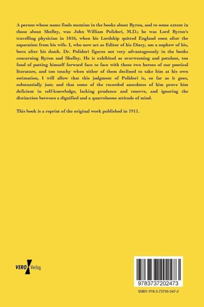 A person whose name finds mention in the books about Byron, and to some extent in those about Shelley, was John William Polidori, M.D.; he was Lord Byron's travelling physician in 1816, when his Lordship quitted England soon after the separation from his wife. I, who now act as Editor of his Diary, am a nephew of his, born after his death. Dr. Polidori figures not very advantageously in the books concerning Byron and Shelley. He is exhibited as overweening and petulant, too fond of putting himself forward face to face with those two heroes of our poetical literature, and too touchy when either of them declined to take him at his own estimation, I will allow that this judgment of Polidori is, so far as it goes, substantially just; and that some of the recorded anecdotes of him prove him deficient in self-knowledge, lacking prudence and reserve, and ignoring the distinction between a dignified and a quarrelsome attitude of mind.