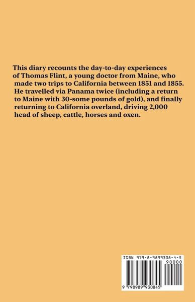 This diary recounts the day-to-day experiences of Thomas Flint, a young doctor from North Anson, Maine, who made two trips to California between 1851 and 1855. He travelled via Panama twice (including a return to Maine with 30-some pounds of gold), and finally returning to California overland, driving 2,000 head of sheep, cattle, horses and oxen, in partnership with his brother, Benjamin Flint, and cousin, Llewellyn Bixby. This became the basis for their founding Flint, Bixby & Co., and numerous subsequent business interests. The main part of the diary covers the second trip to California, in 1853 and 1854, overland and driving a herd of livestock though the Illinois - Nebraska - Wyoming - Utah route to California. The detailed day by day entries describe distance, difficulties with the herds, crossing rivers, encounters with American Indians, Mormons, and other groups heading west on the same trail. It is full of very specific detail - daily logs of mileage, people they encounter, expenditures, income from trading along the way, and so on. Flint wrote "my pistol, whether awake or asleep was always at my right hand." This is a reprint of the original edition published by the Historical Society of Southern California, edited by Waldemar Westergaard. The text has been reset, and there are additional introductory materials and notes.