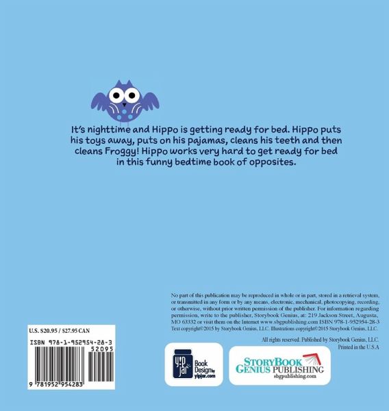 It's nighttime and Hippo is getting ready for bed. Hippo puts his toys away, puts on his pajamas, cleans his teeth and then cleans Froggy! Hippo works very hard to get ready for bed in this funny bedtime book of opposites. He may even sing to Froggy!