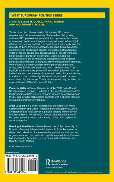 Introduction: the Differentiated Politicisation of European Governance 1. Beyond authority transfer: explaining the politicisation of Europe 2. The politicisation of European integration in domestic election campaigns 3. The differentiated politicisation of European tax governance . A structural approach to politicisation in the Euro crisis . The Eurozone crisis and citizen engagement in EU affairs 6. The party politics of the Euro crisis in the German Bundestag: frames, positions and salience 7. Assessing actually-existing trajectories of EU politicisation 8. Opening up Europe: next steps in politicisation research