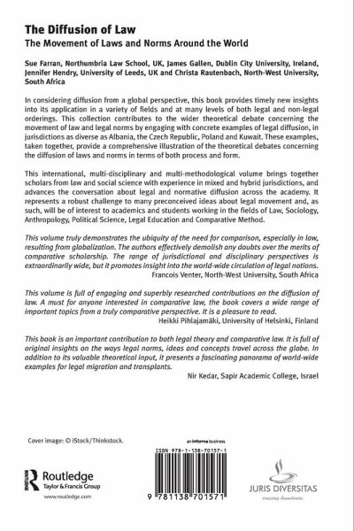 In considering diffusion from a global perspective, this book provides timely new insights into its application in a variety of fields and at many levels of both legal and non-legal orderings. This collection contributes to the wider theoretical debate concerning the movement of law and legal norms by engaging with concrete examples of legal diffusion, in jurisdictions as diverse as Albania, the Czech Republic, Poland and Kuwait. These examples, taken together, provide a comprehensive illustration of the theoretical debates concerning the diffusion of laws and norms in terms of both process and form. This international, multi-disciplinary and multi-methodological volume brings together scholars from law and social science with experience in mixed and hybrid jurisdictions, and advances the conversation about legal and normative diffusion across the academy. It represents a robust challenge to many preconceived ideas about legal movement and, as such, will be of interest to academics and students working in the fields of Law, Sociology, Anthropology, Political Science, Legal Education and comparative method.