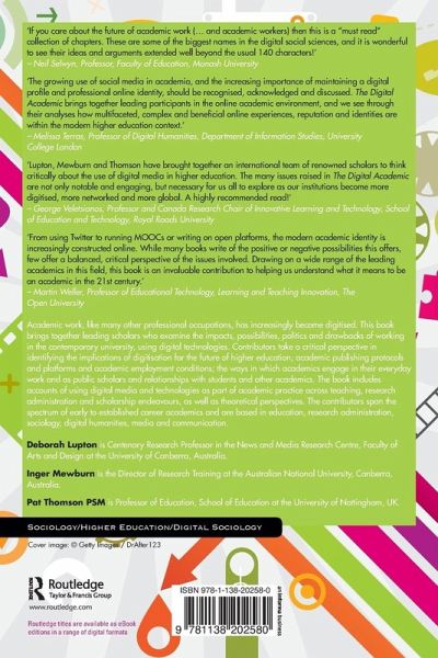 'Lupton, Mewburn and Thomson have brought together an international team of renowned scholars to think critically about the use of digital media in higher education. The many issues raised in The Digital Academic are not only notable and engaging, but necessary for us all to explore as our institutions become more digitised, more networked and more global. A highly recommended read!'