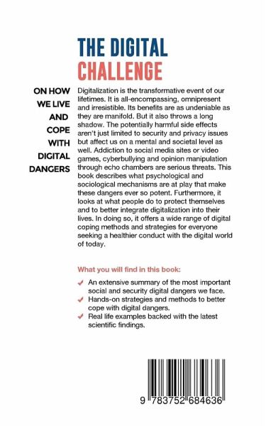 Digitalization is the transformative event of our lifetimes. It is all-encompassing, omnipresent and irresistible. Its benefits are as undeniable as they are manifold. But it also throws a long shadow. The potentially harmful side effects aren't just limited to security and privacy issues but affect us on a mental and societal level as well. Addiction to social media sites or video games, cyberbullying and opinion manipulation through echo chambers are serious threats. This book describes what psychological and sociological mechanisms are at play that make these dangers ever so potent. Furthermore, it looks at what people do to protect themselves and to better integrate digitalization into their lives. In doing so, it offers a wide range of digital coping methods and strategies for everyone seeking a healthier conduct with the digital world of today.What you will find in this book:- An extensive summary of the most important social and security digital dangers we face.- Hands-on strategies and methods to better cope with digital dangers.- Real life examples backed with the latest scientific findings.