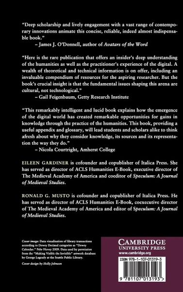 1. Introduction to the digital humanities 2. The organization of humanities research 3. The elements of digital humanities: text and document 4. The elements of digital humanities: object, artifact, image, sound, space 5. Digital tools 6. Digital environments 7. Publication: pre-release, release, and beyond 8. The meta-issues of digital humanities 1 9. Meta-issues 2: copyright and other rights, DRM, open access 10. The evolving landscape for the digital humanities Epilogue: the half-life of wisdom Appendix: digital tools.