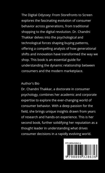 "The Digital Odyssey: From Storefronts to Screens - Defining the Generational Shifts in Buying Behaviour" is a comprehensive exploration of the evolution of consumer behavior in the digital era. This insightful book delves into the transformative journey from traditional brick-and-mortar shopping to the seamless world of digital transactions. Covering generational shifts-from Baby Boomers to Generation Z-and examining the roles of artificial intelligence, virtual reality, and data in reshaping buying patterns, this book offers an in-depth look at how technology is redefining the commercial landscape. Perfect for marketing professionals, entrepreneurs, and tech enthusiasts, it highlights challenges and opportunities in the ever-evolving digital economy.