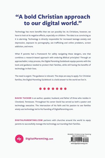 Technology has more benefits than we can possibly list. As Christians, however, we have to look at its negative effects, especially on children. The data is as convincing as it is alarming. Technology is directly responsible for increased teenage anxiety and depression, exposure to pornography, sex trafficking and online predators, screen addiction, and more. What if parents had a framework for safely navigating these dangers, one that combines a research-based approach with enduring Biblical principles? Through an approachable 7-step process, The Digital Parenting Guidebook equips parents with the tools and guidance needed to protect their families, while still having the benefits of technology in their lives. The need is urgent. The guidance is relevant. The steps are easy to apply. For Christian families, the Digital Parenting Guidebook is a bold answer to the world we live in.