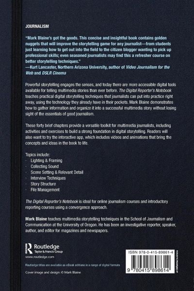 Powerful storytelling engages the senses, and today, there are more accessible digital tools available for telling multimedia stories than ever before. The Digital Reporter's Notebook teaches practical digital storytelling techniques that journalists can put into practice right away, using the technology they already have in their pockets. Mark Blaine demonstrates how to gather information and organize it into a successful multimedia story without losing sight of the essentials of good journalism. These forty brief chapters provide a versatile toolkit for multimedia journalists, including activities and exercises to build a strong foundation in digital storytelling. Readers will also want to try the interactive app, which includes videos and animations that bring the concepts and ideas in the book to life. Topics include: Lighting & Framing Collecting Sound Scene Setting & Relevant Detail Interview Techniques Story Structure File Management