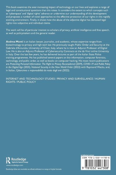 Andrea Monti is an Italian lawyer, journalist, and academic, whose expertise ranges from biotechnology to privacy and high-tech law. He previously taught Public Order and Security at the Gabriele d'Annunzio, University of Chieti, Italy, where he is now an Adjunct Professor of Digital Law. He is also an Adjunct Professor of Cybersecurity Contracts at the da Vinci online University in Italy. Over the last few years, he has delivered lectures as part of the Italian State Police training programmes. He has published several papers on bio-information, computer forensics, technology, and public order, as well as books on computer hacking. His most recent publications are Protecting Personal Information: The Right to Privacy Reconsidered (2019), COVID-19 and Public Policy in the Digital Age (2021), National Security in the New World Order (2022) with Raymond Wacks, and, in Italian, Cybercrime e responsabilità da reato degli enti (2022).