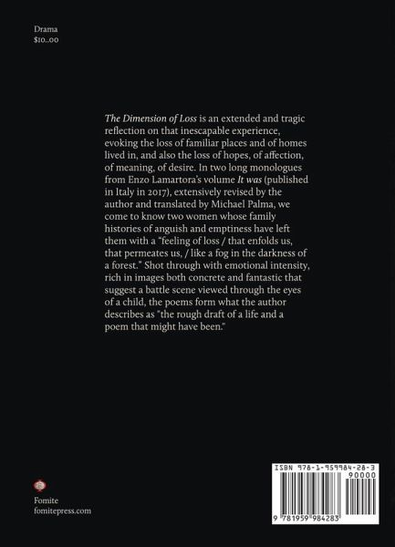 The Dimension of Loss is an extended and tragic reflection on that inescapable experience, evoking the loss of familiar places and of homes lived in, and also the loss of hopes, of affection, of meaning, of desire. In two long monologues from Enzo Lamartora's volume It was (published in Italy in 2017), extensively revised by the author and translated by Michael Palma, we come to know two women whose family histories of anguish and emptiness have left them with a "feeling of loss / that enfolds us, that permeates us, / like a fog in the darkness of a forest." Shot through with emotional intensity, rich in images both concrete and fantastic that suggest a battle scene viewed through the eyes of a child, the poems form what the author describes as "the rough draft of a life and a poem that might have been."
