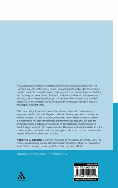 The Dimensions of Hegel's Dialectic examines the epistemological import of Hegelian dialectic in the widest sense. In modern philosophy, German idealism, Hegel in particular, is said to have made significant innovative steps in redefining the meaning, scope and use of dialectic. Indeed, it is dialectic that makes up the very core of Hegel's position, yet it is an area of his thought that is widely neglected by the available literature despite the increased interest in Hegel's philosophy in recent years. This book brings together an international team of expert contributors in a long-overdue discussion of Hegelian dialectic. Twelve specially commissioned essays address the task of making sense and use of Hegel's dialectic, which is fundamental not only for historical and hermeneutic reasons, but also for pragmatic ones; a satisfactory response to this challenge has the power to clarify Hegel's legacy in the current debate. The essays situate the dialectic in the context of German idealism with a clear-sighted elucidation of the problems that Hegel's dialectic is called upon to solve.