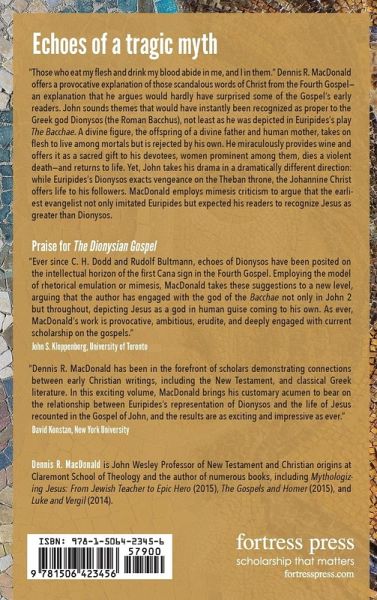 MacDonald observes that the Fourth Gospel sounds themes proper to the Greek god Dionysos (the Roman Bacchus), not least as he was depicted in Euripides's play The Bacchae.