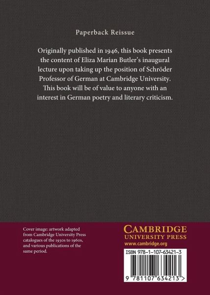 Originally published in 1946, this book presents the content of Eliza Marian Butler's inaugural lecture upon taking up the position of Schröder Professor of German at Cambridge University. This book will be of value to anyone with an interest in German poetry and literary criticism.