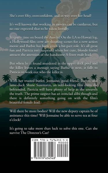 She's over fifty, overconfident, and in way over her head! It's well known that working in movies can be cutthroat, but no one expected that to be taken literally. It's party time on board the Aurelia! On the LA to Hawaii leg, a Hollywood film crew are shooting scenes for a new action movie and Barbie has been given a bit-part role. It's all great fun and Patricia isn't surprised when her cute, blonde friend attracts the attention of the handsome A-lister male lead. But when he is found murdered in the upper deck pool and the killer leaves a message saying Barbie is next, it falls to Patricia to work out who the killer is. With her trusted butler, Jermaine, good friend, Barbie, and lame-duck Shane Sussmann, an odd-looking film extra she befriended, Patricia will have plenty of help as she unravels the truth. The prime suspect has an ironclad alibi though and there is definitely something going on with the film's beautiful female lead. Will there be more bodies? Will the new deputy captain be of assistance this time? Will Jermaine be able to serve tea at four o'clock? It's going to take more than luck to solve this one. Can she survive The Director's Cut?