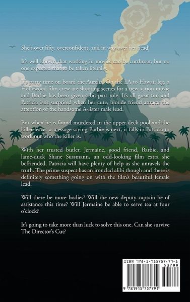 She's over fifty, overconfident, and in way over her head! It's well known that working in movies can be cutthroat, but no one expected that to be taken literally. It's party time on board the Aurelia! On the LA to Hawaii leg, a Hollywood film crew are shooting scenes for a new action movie and Barbie has been given a bit-part role. It's all great fun and Patricia isn't surprised when her cute, blonde friend attracts the attention of the handsome A-lister male lead. But when he is found murdered in the upper deck pool and the killer leaves a message saying Barbie is next, it falls to Patricia to work out who the killer is. With her trusted butler, Jermaine, good friend, Barbie, and lame-duck Shane Sussmann, an odd-looking film extra she befriended, Patricia will have plenty of help as she unravels the truth. The prime suspect has an ironclad alibi though and there is definitely something going on with the film's beautiful female lead. Will there be more bodies? Will the new deputy captain be of assistance this time? Will Jermaine be able to serve tea at four o'clock? It's going to take more than luck to solve this one. Can she survive The Director's Cut?