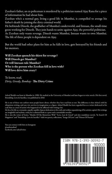 Zeeshan's father, an ex-policeman is murdered by a politician named Ajay Rana for a piece of information he had about him. Zeeshan who's a normal guy, living a good life in Mumbai, is compelled to avenge his father's death by joining the dirty criminal world. He befriends Dinesh, the godfather of Mumbai's underworld, and Imraan, the small-time goon working for Dinesh. They join hands to unite against Ajay, the powerful politician. As Zeeshan only wants revenge. Dinesh wants Mumbai, Imraan wants to own Mumbai. The life of three people is dependent on Ajay. But the world had other plans for him as he falls in love, gets betrayed by his friends and his mentors. Will Zeeshan quench his thirst for revenge? Will Dinesh get Mumbai? Or will Imraan rule Mumbai? Who is the person who Zeeshan fell in love with? Will love drive him crazy? To know, read, Dirty, Greedy, Bombay - The Dirty Crime
