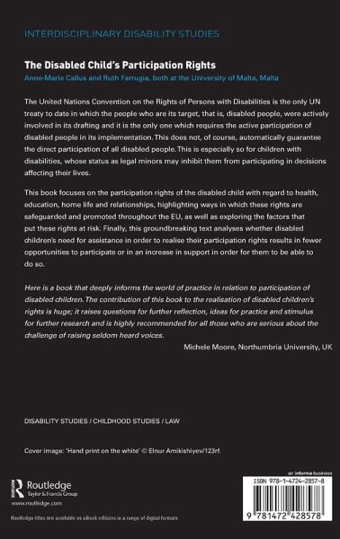 This book focuses on the participation rights of the disabled child with regard to health, education, homelife and relationships, highlighting ways in which these rights are safeguarded and promoted throughout the EU, as well as exploring the factors that put these rights at risk. Finally, this groundbreaking text analyses whether disabled children's needs for assistance in order to realise their participation rights results in fewer opportunities to participate or in an increase in support in order for them to be able to do so.
