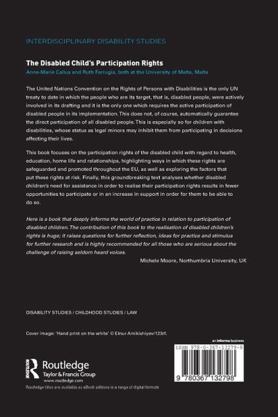 This book focuses on the participation rights of the disabled child with regard to health, education, homelife and relationships, highlighting ways in which these rights are safeguarded and promoted throughout the EU, as well as exploring the factors that put these rights at risk. Finally, this groundbreaking text analyses whether disabled children's needs for assistance in order to realise their participation rights results in fewer opportunities to participate or in an increase in support in order for them to be able to do so.