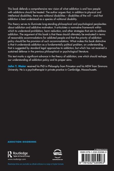 This book defends a comprehensive new vision of what addiction is and how people with addictions should be treated. The author argues that, in addition to physical and intellectual disabilities, there are volitional disabilities - disabilities of the will - and that addiction is best understood as a species of volitional disability.