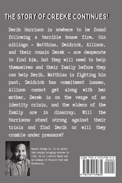 The youngest member of the Harrison family, Derik, is missing following a terrible house fire. His siblings - Matthias, Deidrick, Allison, and their cousin Derek - are desperate to find him, but they will need to help themselves and their family before they can help Derik. Matthias is fighting his past temptations and actions, Deidrick has commitment issues, Allison cannot get along with her mother, Derek is on the verge of an identity crisis, and the elders of the family are in disarray. Will the Harrisons stand strong against their trials and find Derik or will they crumble under pressure?