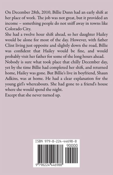 On December 28th, 2010, Billie Dunn had an early shift at her place of work. The job was not great, but it provided an income - something people do not sniff away in towns like Colorado City. She had a twelve hour shift ahead, so her daughter Hailey would be alone for most of the day. However, with father Clint living just opposite and slightly down the road, Billie was confident that Hailey would be fine, and would probably visit her father for some of the long hours ahead. Nobody is sure what took place that chilly December day, yet by the time Billie had completed her shift, and returned home, Hailey was gone. But Billie's live in boyfriend, Shaun Adkins, was at home. He had a clear explanation for the young girl's whereabouts. She had gone to a friend's house where she would spend the night. Except that she never turned up.