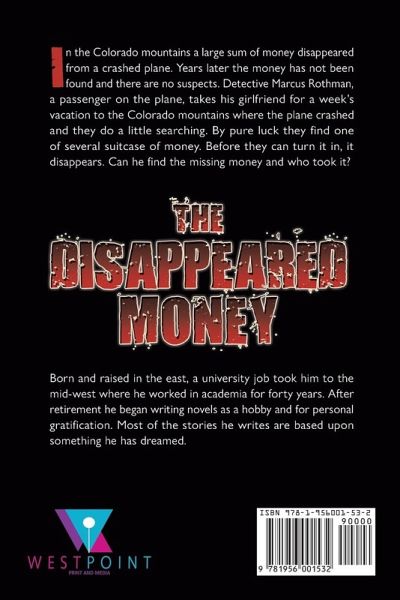 In the Colorado mountains a large sum of money disappeared from a crashed plane. Years later the money has not been found and there are no suspects. Detective Marcus Rothman, a passenger on the plane, takes his girlfriend for a week's vacation to the Colorado mountains where the plane crashed and they do a little searching. By pure luck they find one of several suitcase of money. Before they can turn it in, it disappears. Can he find the missing money and who took it?