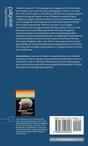 Documenting an audacious Franco-German movement for moral disarmament, instigated in 1921 by war veteran and French Catholic politician Marc Sangnier, in this transnational study Gearóid Barry examines the European resonance of Sangnier's Peace Congresses and their political and religious ecumenism within France in the era of two World Wars.